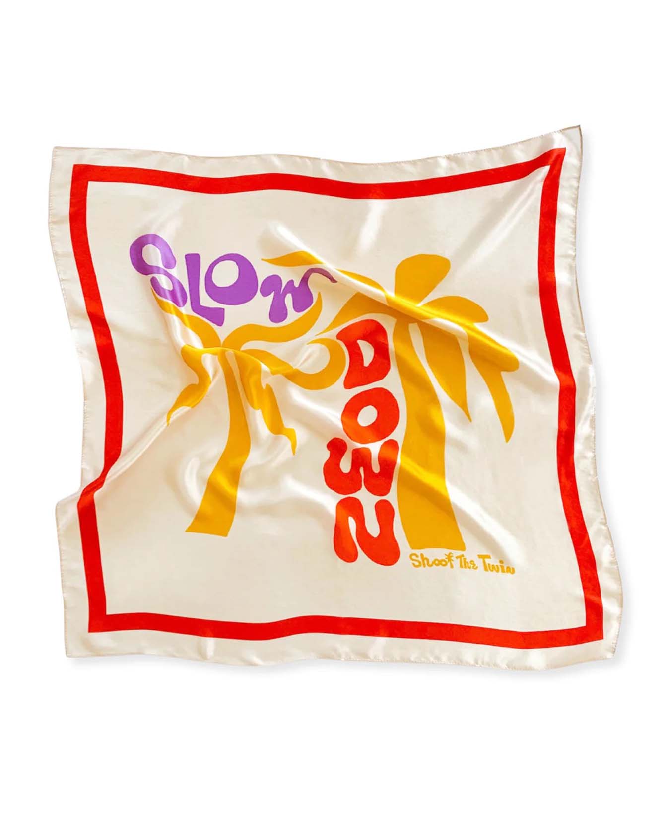The Dream Day Scarf is a 100% Silk Satin and features our exclusive Slow Down print. The piece reflects a place to reinvent yourself, create your own rules, and discover eternal bliss.